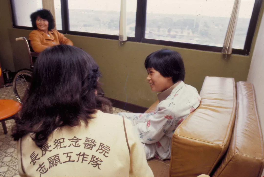 The social service center volunteer workers, who are mostly college students, visit patients regularly.