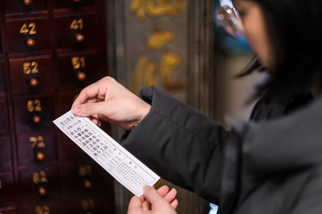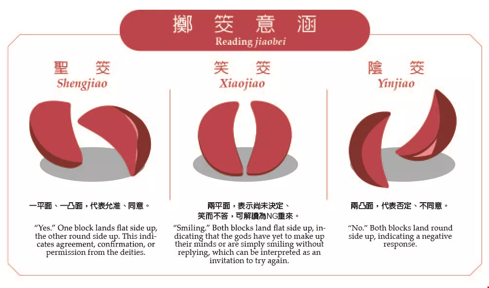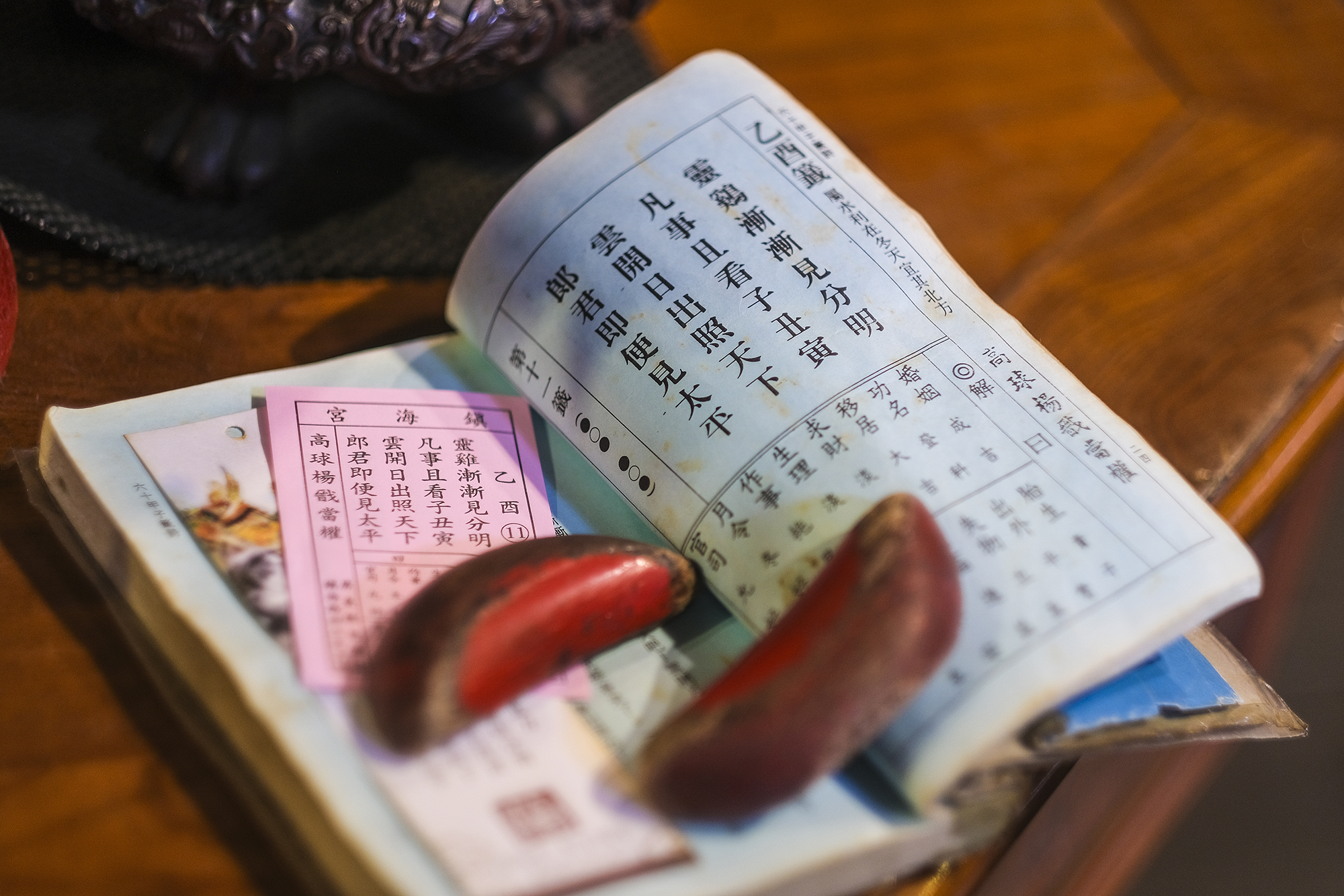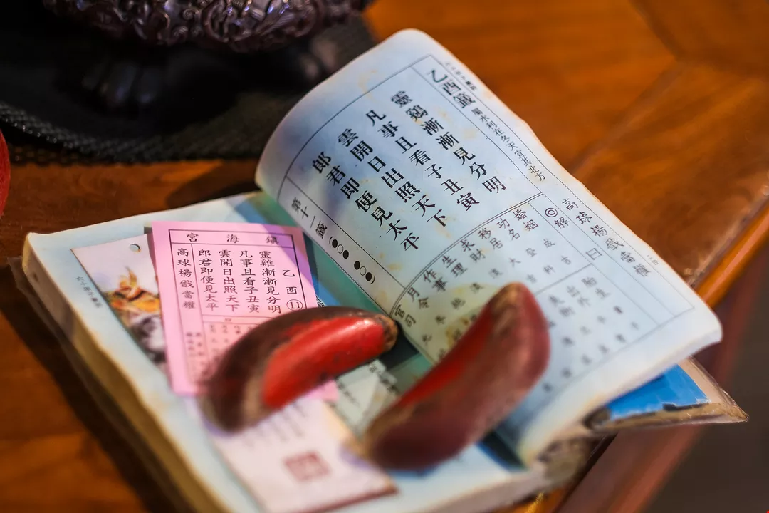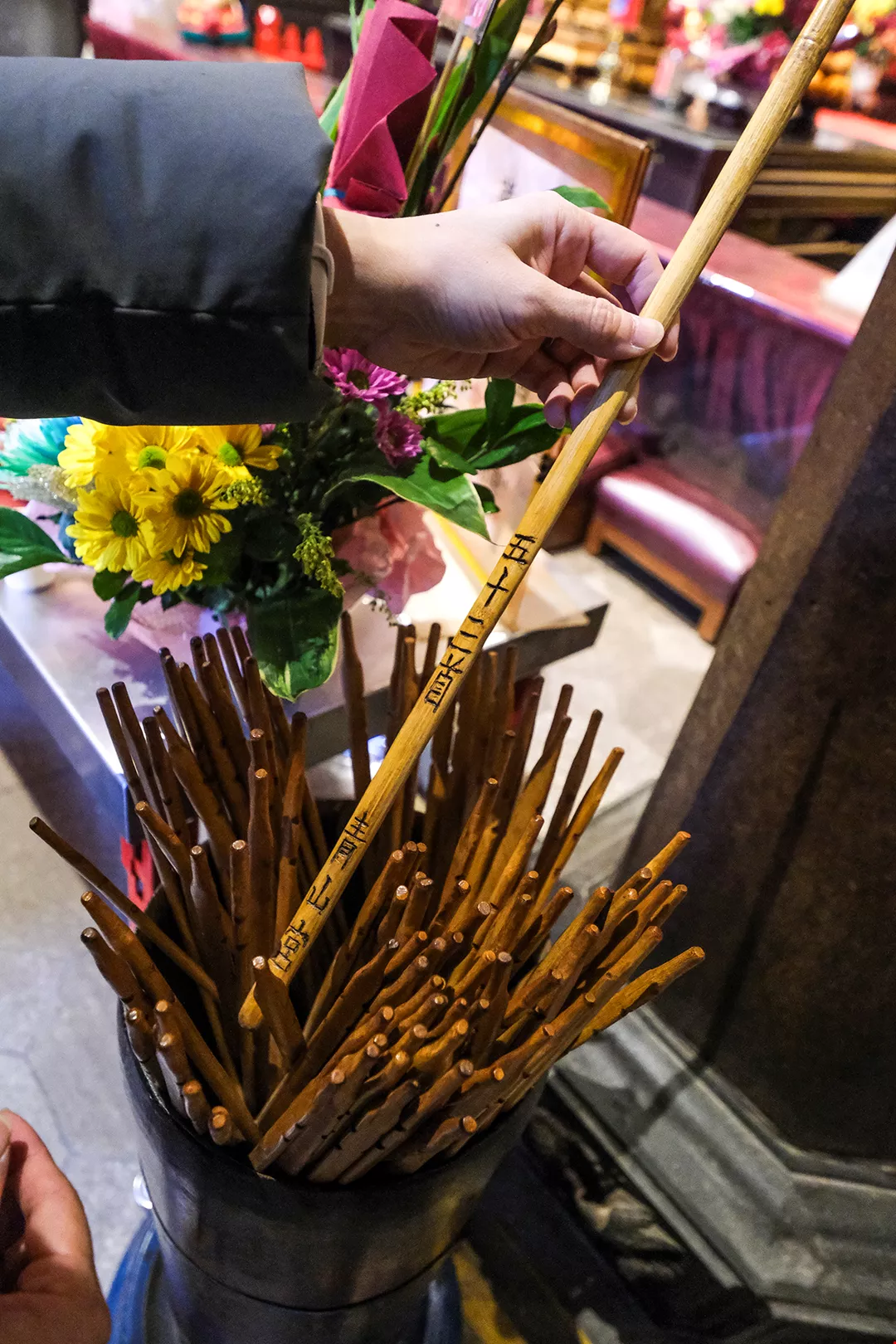Before drawing a fortune stick, one must first cast the jiaobei (divination blocks) to receive permission from the gods.