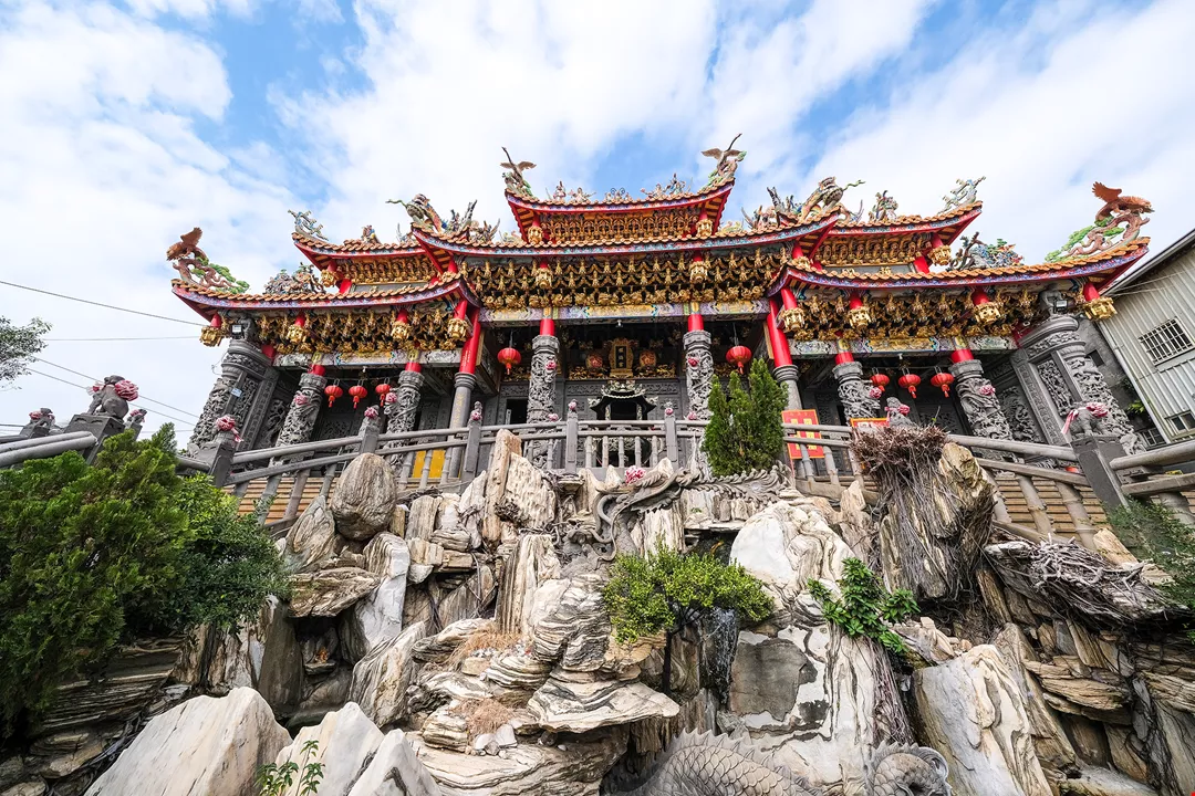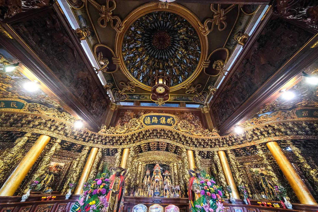The wave-shaped shrine of the deities at Jhen Hai Temple reflects the application of boat building techniques in the temple’s architecture. The flowing arcs give the structure a unique grandeur.