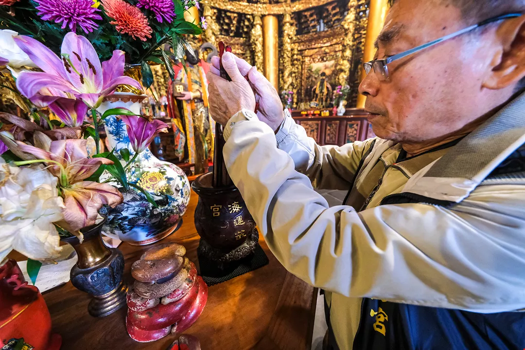 While online divination services are being provided by a growing number of temples such as Donglong Temple in Donggang; Chaotian Temple in Beigang, Yunlin County; Tianhou Temple in Lukang, Changhua County; and the Xia Hai City God Temple in Taipei, there is an irreplaceable sense of ceremony that comes with entering a temple in person to seek guidance from the gods face to face.