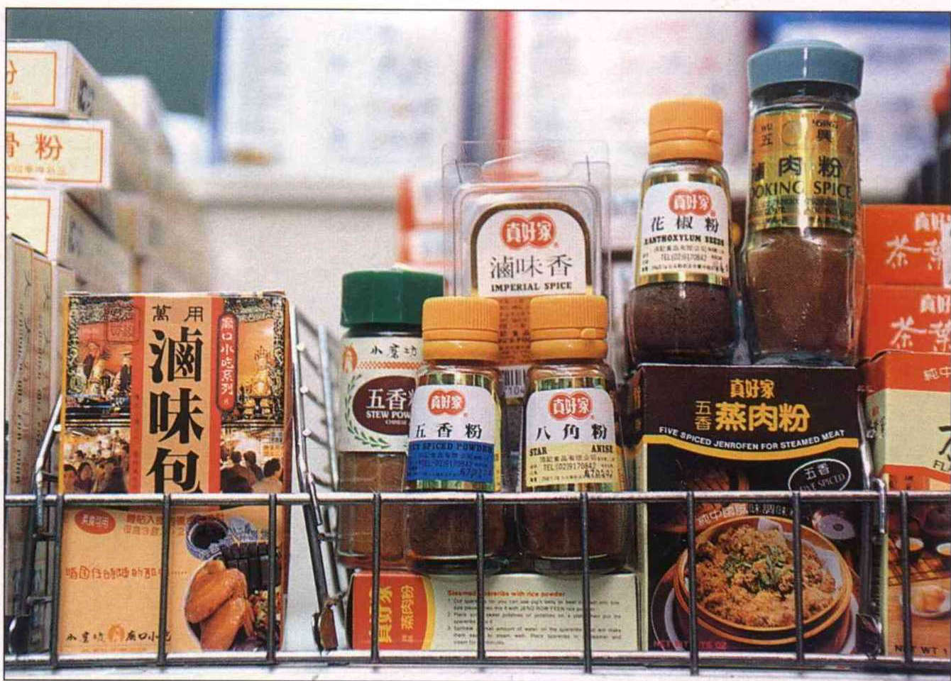 "I remember 15 years or so ago that to buy five-spice we always went to a Chinese herbal medicine shop, where the shopkeeper would make up the mixture on the spot from the individual spices, just like filling a herbal prescription," recalls cookery expert Theresa Lin. It was only when she came to use this mixture at home that she would sew up little gauze bags and measure the mixture into them. Ordinary housewives who didn't want to go to so much trouble made do with star anise and fennel bought at a grocer's shop, which they considered gave a good enough flavor.