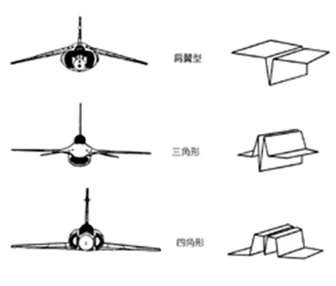 Chuo's three original shapes: the underslung fuselage, inspired by the Harrier jump-jet; the triangular fuselage, developed from the F-16 fighter; and the square fuselage patterned after the F-4 and the MiG-21. (courtesy of Chuo Chih-hsien)