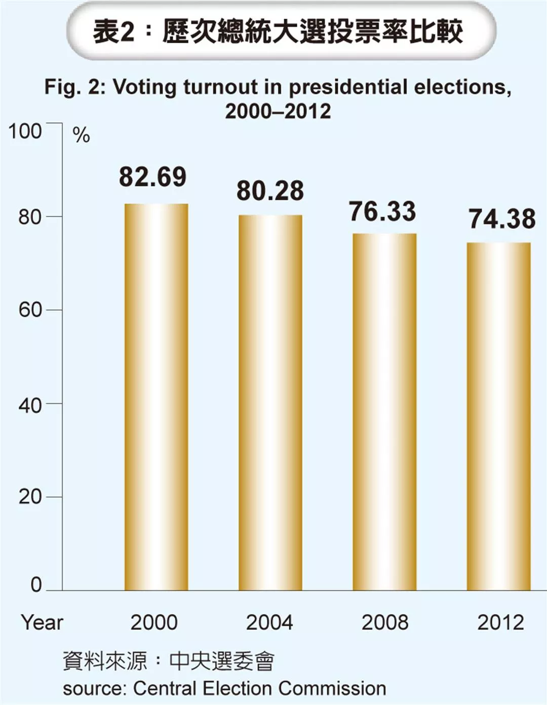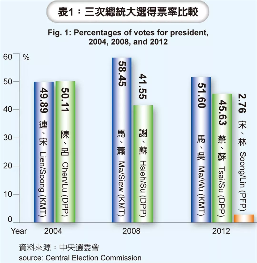 Fig. 1: Percentages of votes for president, 2004, 2008, and 2012/source: Central Election Commission