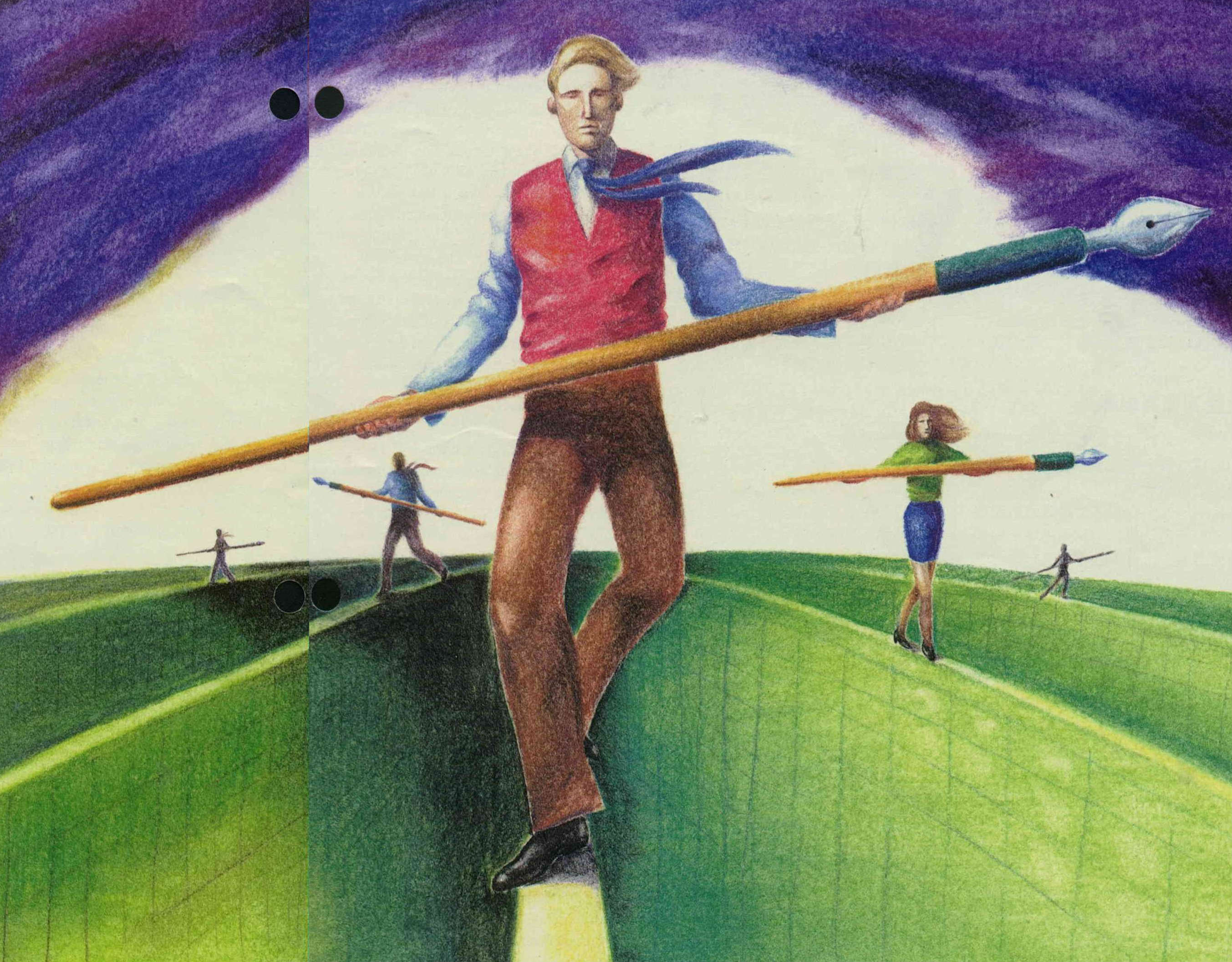 Where should the line be drawn between freedom of speech and protection against libel? Walking this tightrope, journalists must never let down their guard. (illustration by Tsai Chih-pen)