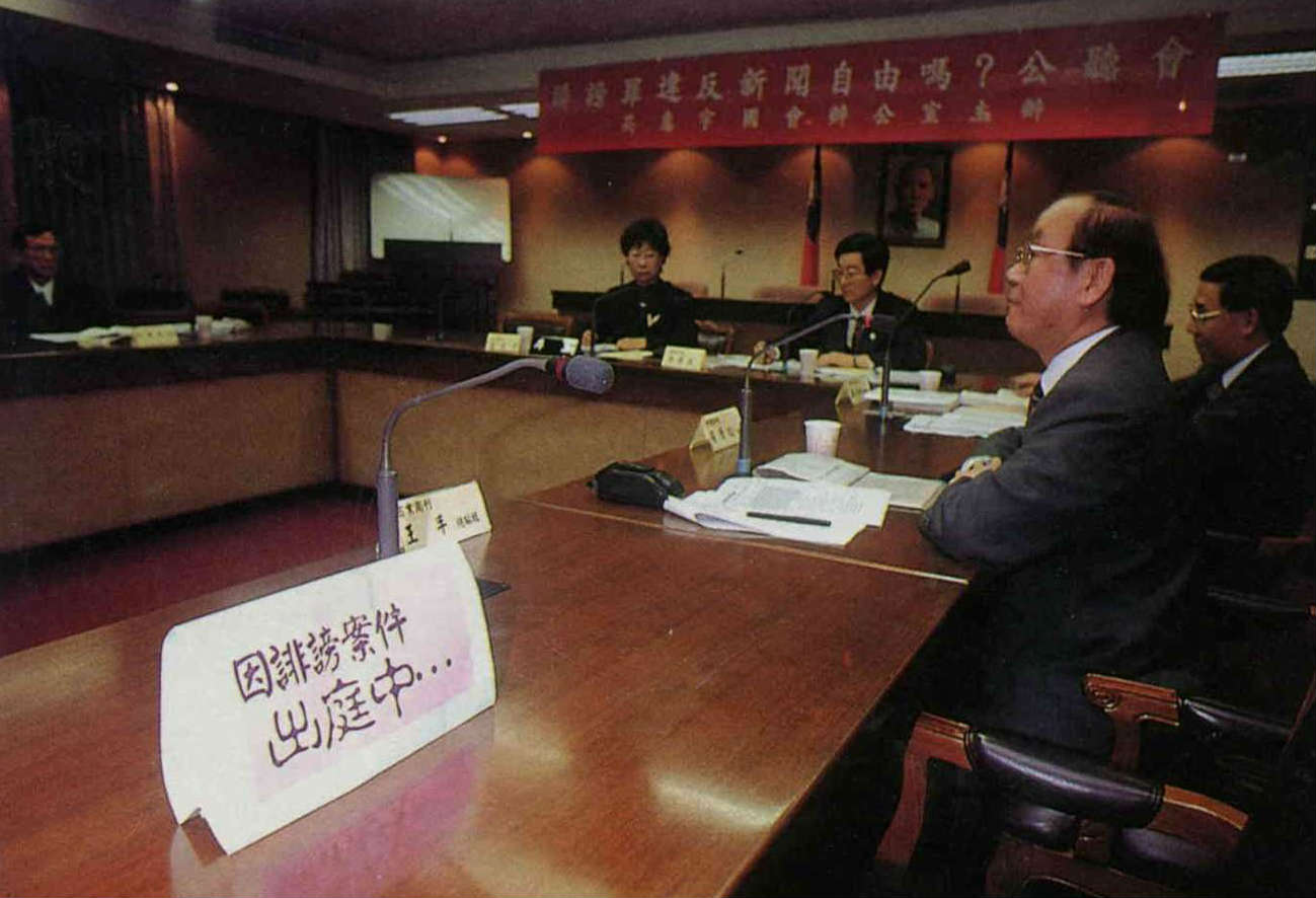 Have lawsuits become an onerous burden for the news media? The photo shows Legislator Alice Kao holding a public hearing about media lawsuits. Some invited journalists couldn't attend because they were in court.