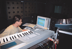 Music and sound effects are important keys to the development of a successful game. Shown here is a game company recording studio.