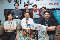 Soft-World International has released a string of imaginative games, including "Fighters of Louis Cha" and "Wulin Fighters." All the characters in these games have sprung from the martial arts novels of Louis Cha, and their on-screen heroics have captured the imaginations of gamers throughout the Chinese-speaking world. Company president Wang Chun-po is at center, vice-manager Chang Yi-min of the Taiwan Research Center is at front right.