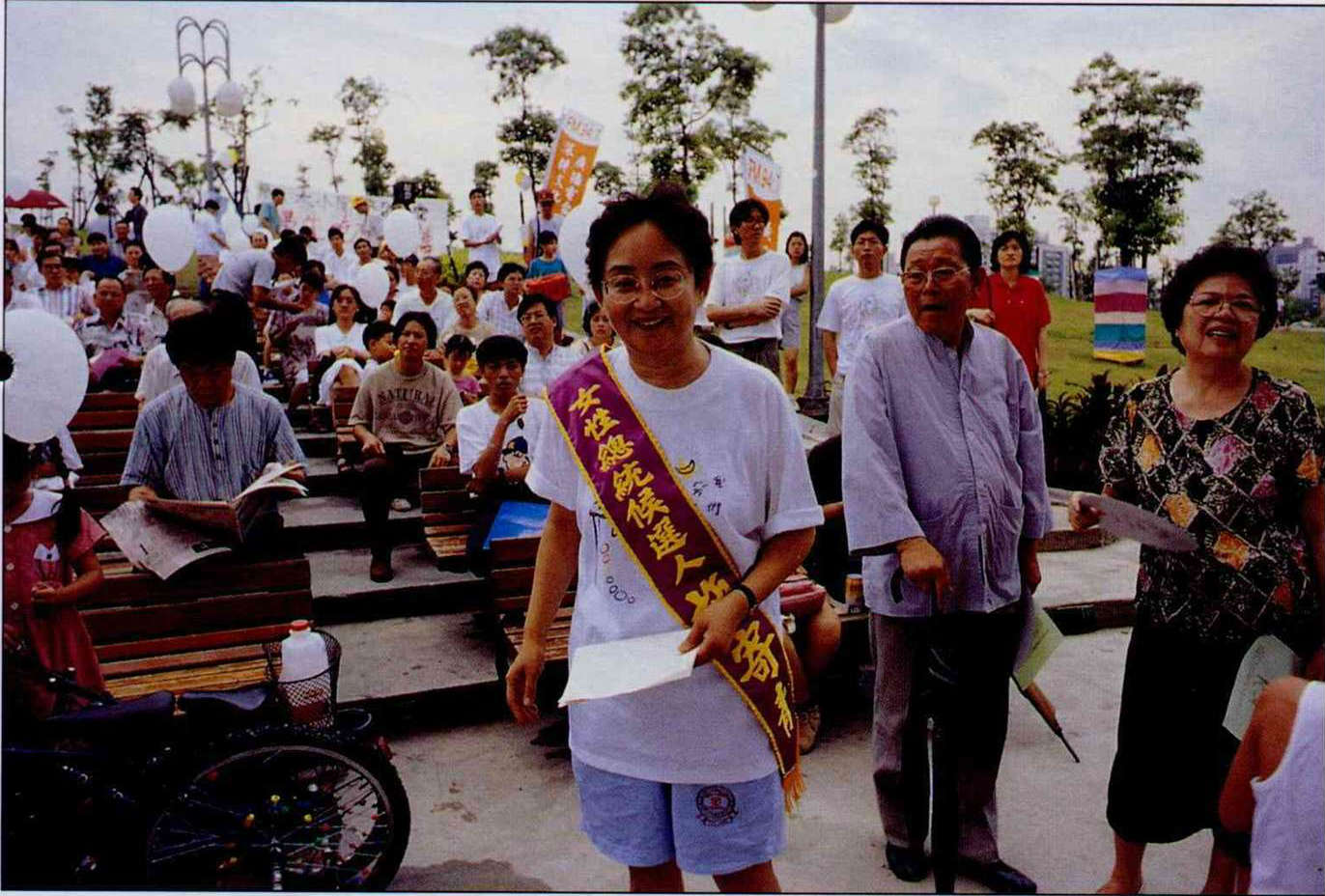 At an educational reform rally, the arrival of female presidential candidate Shih Chi-ching causes a big commotion.