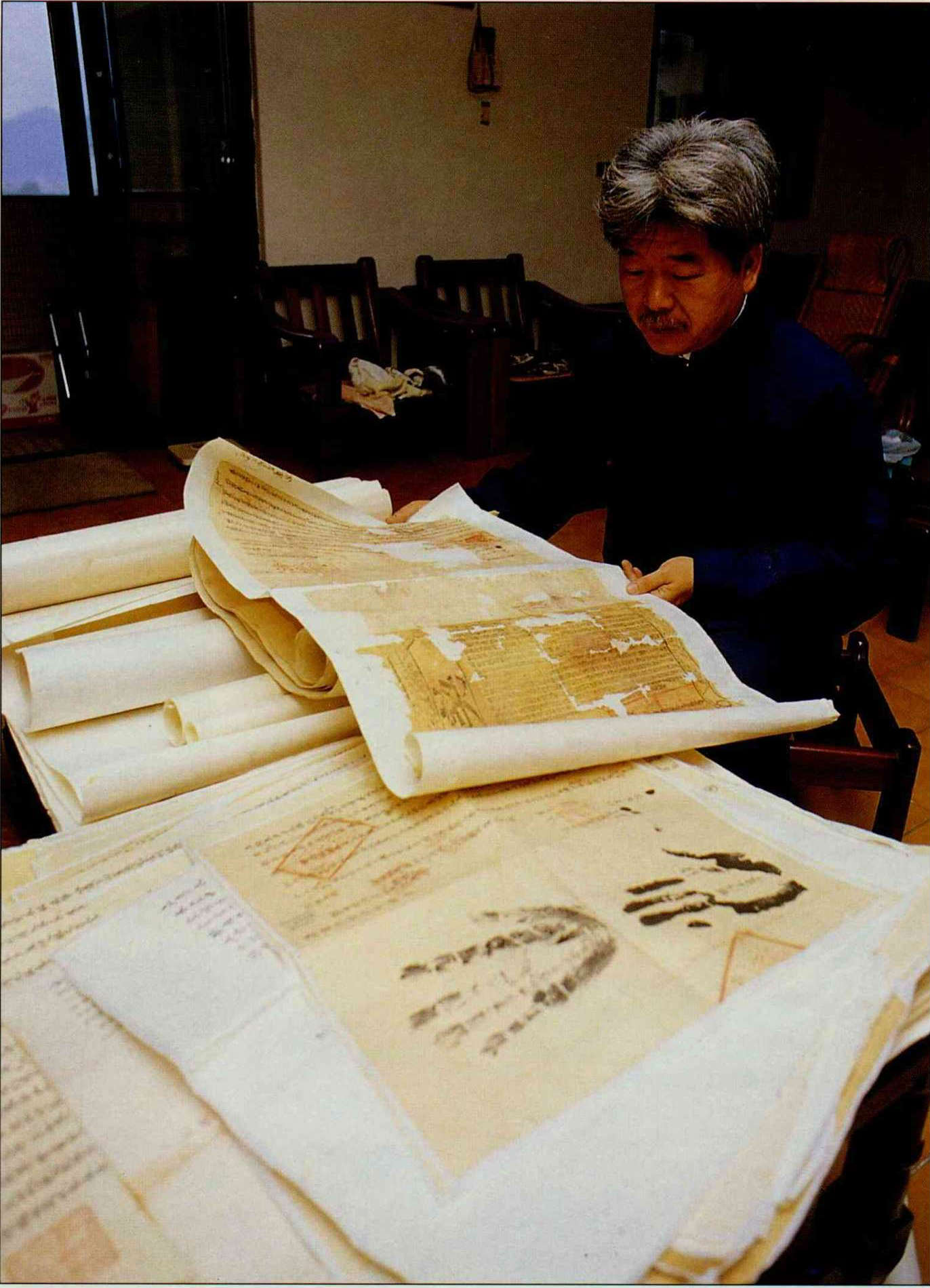 It is early summertime, and historian Yin Chang-i, a professor at Fujen Catholic University, accompanies the owner of a small grocery up into the loft above the store. The owner picks a case made of premium hsiaonan wood from among the dusty miscellanca, and opens it to reveal a stack of over 100 old contracts.