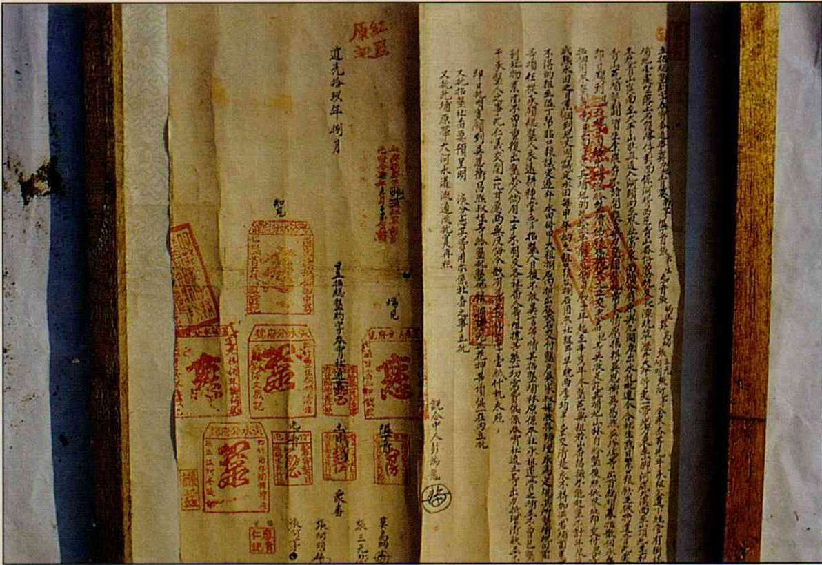 Some contracts were drawn up on behalf of groups of farmers, to safeguard the irrigation on which they depended in common. One such covenant from around 100 years ago, was an agreement by 13 farmsteads in the Kaomei district not to fight among themselves over water rights, which they had been entitled to since the early 18th century. The farmsteads were also obliged to act together if it was ever necessary to physically defend their water rights, and they would share any costs incurred in the campaign, resulting from injury, death, or court cases. At the same time, disputes among the families themselves had to be resolved through the intervention of a local leader rather than by resorting to the government authorities. Anyone who disregarded this rule would be penalized by the community and forced to pay for the staging of an opera by way of public apology. Life for the early settlers was tough indeed.