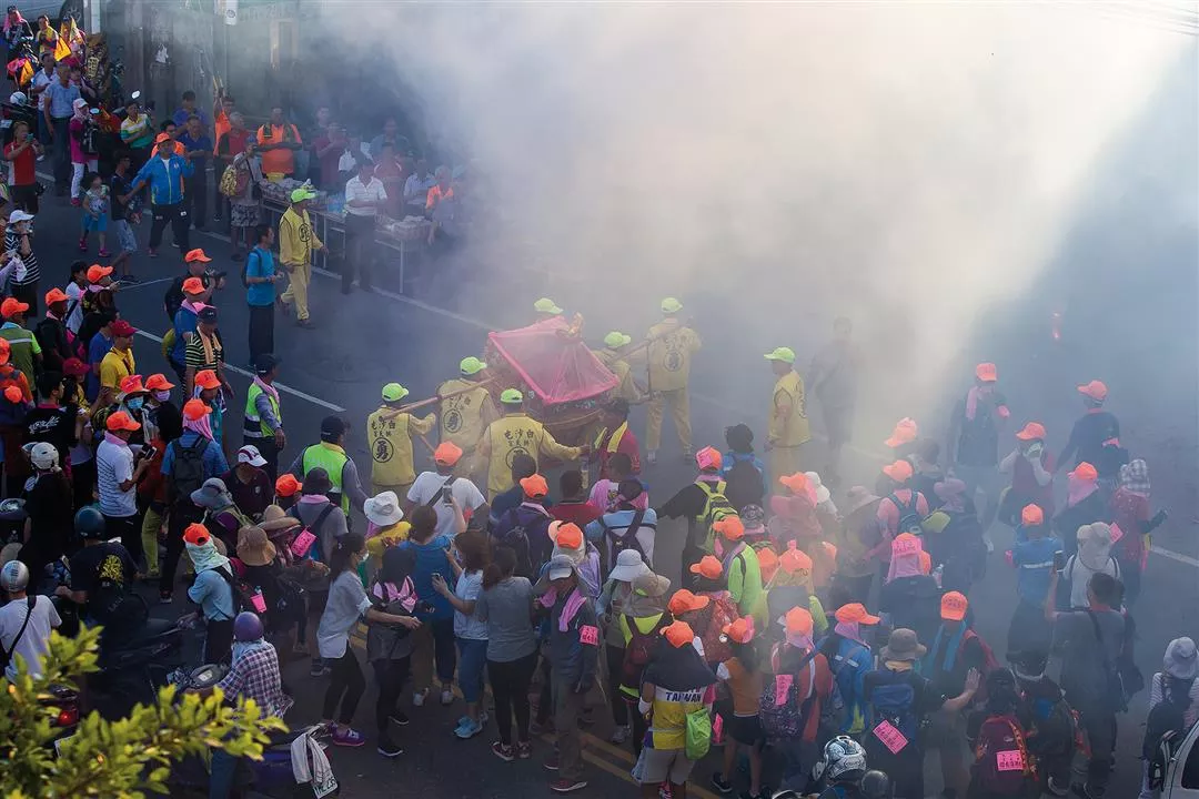At 11:40 p.m. on May 16, 2018, there was quite a hubbub at Gong Tian Temple in Tong-xiao, Miaoli County, as the annual Bai-sha-tun Mazu Pilgrimage set off. This year Mazu indicated that she wanted to be taken to Chao-Tian Temple in Bei-gang, Yun-lin County, within 36 hours. The round trip of nearly 320 kilometers on foot would be a rigorous test for the temple workers and the faithful.