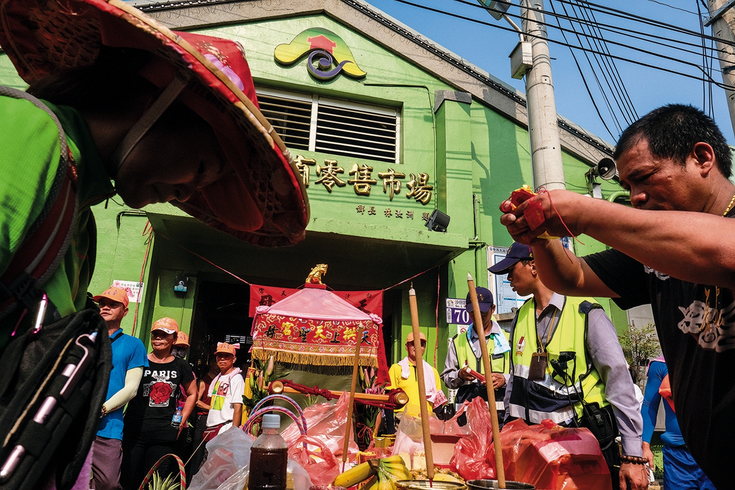 The route of the annual pilgrimage is not fixed. Sometimes Mazu will go to a supermarket, sometimes to a school. (photo by Chuang Kung-ju)