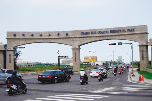 The Changhua Coastal Industrial Park at more than 3600 hectares is split into three separate areas: Hsienhsi, Lunwei and Lukang. Construction began in 1979 but was stopped amid a worldwide recession. Then, after construction had restarted, manufacturers began to pull up their stakes to head abroad in the 1990s. Currently, only the Lukang area has a relatively high occupancy rate. Here it is seen during morning rush hour.