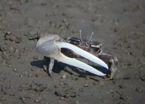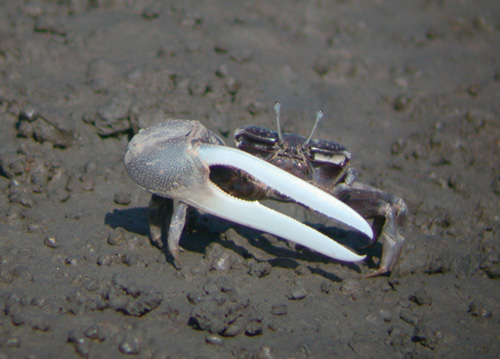 Mangroves moderate the tidal flow and speed the accretion of mud, so that some species of wildlife that are ill suited to this transitional mudflat ecology, such as the fiddler crabs Uca formosensis and Uca lactea, give way to other species, such as Uca arcuata. Thus, the animals and plants change, and over time the beach turns into land, and the mudflats and their special ecology are gradually eliminated.