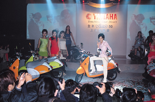With income streams growing more diverse, album sales are no longer big stars' main source of revenue. The photo shows Stefanie Sun at a motorcycle promotion.