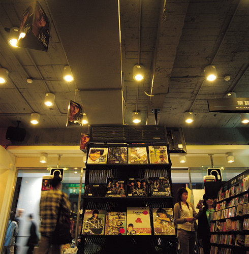 The declining fortunes of the recording industry are reflected in the declining numbers of chain record stores and the smaller size of the stores that remain. The photo shows a branch of TCR/Rose, the industry's largest chain in Taiwan, near the Taipei Station.