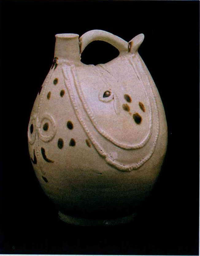 (Above) A glazed snuff bottle from the Liao dynasty(circa 1000), 21.6 cm high.