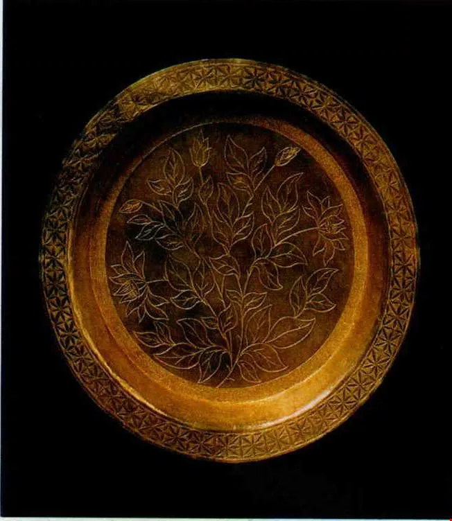 (Below)No one knows what kind of food this gold plate (14.6 cm wide) form the Northern Sung dynasty held, but one thing's for sure--it came form an aristocratic family.