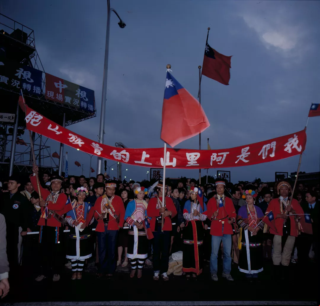 Also present at the flag raising ceremony a group of Taiwan aborigines.