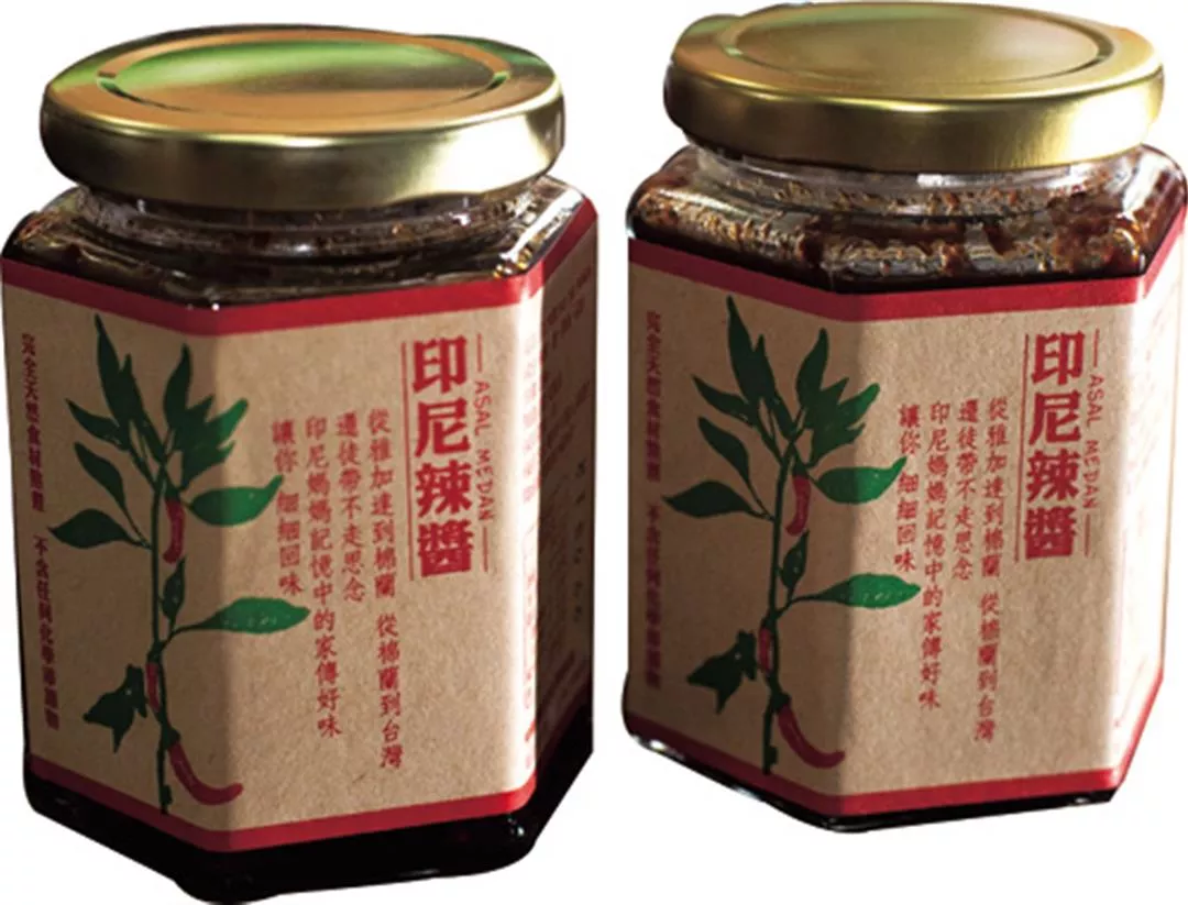 Indonesian Lee Hui-fen says that like all Indonesians she loves spicy food, but she found Taiwanese chili sauce more salty than hot, so she began producing her own sauce, "Asal Medan," at home. This sauce has now become a trademark product of TASAT, selling 3,000 jars a year.
