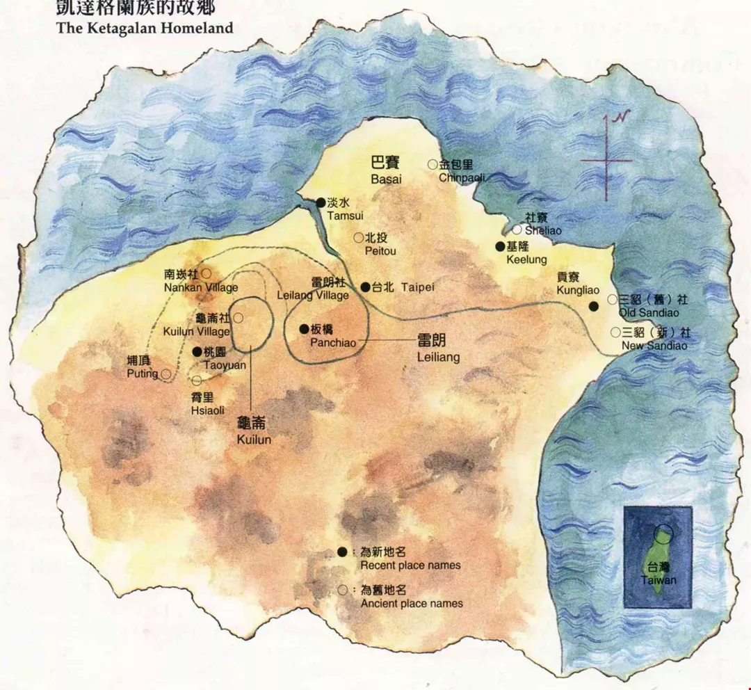 The Ketagalan Homeland According to linguistic differences, scholars have divided the Ketagalan into two branches: The northeast branch includes the Pasai language branch, as well as the Ketagalan of Duoluo Meiyuan and Linao Village. The Southwest branch includes the four villages of Leilang, as well as Nankan and Puting. The Kuilun group, which lives in the same area, has been proven more closely related to the Saisiat. Source: Academia Sinica Institute of History and Philology researcher Li Jen-kui.