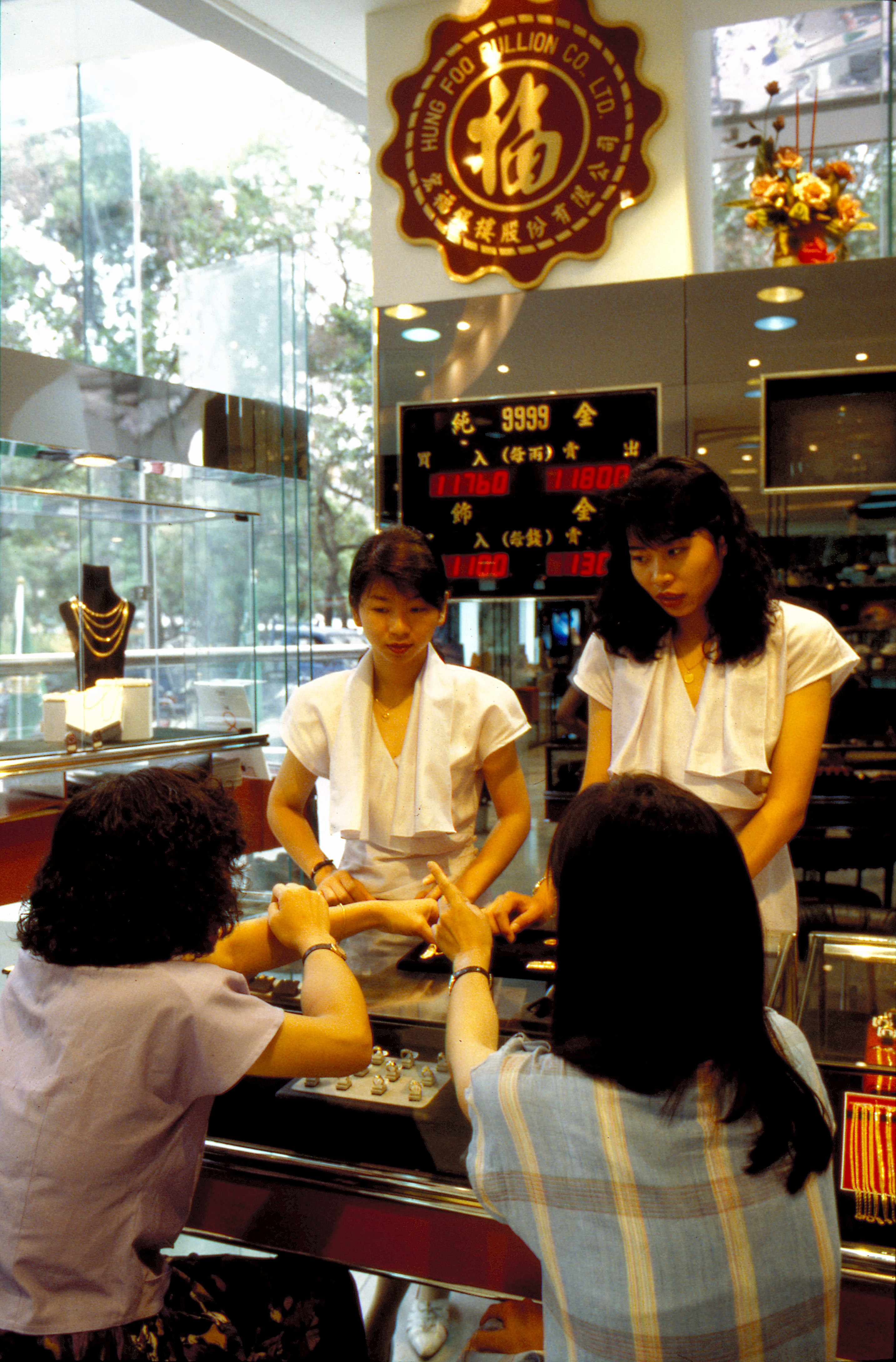 Tony Hau says it's not the case. He believes that Taiwan people are far less intense doing business than Hongkongers. And, with demand for jewelry booming under the impetus of greater consumer power, the work of a Hong Kong master, with a slightly higher level of skill, is immediately embraced. Meng-huei Tang, assistant general manager for public relations at the Hung Foo Bullion Company, points out that these "wandering masters" have done much to raise the level of skills in the industry as a whole.