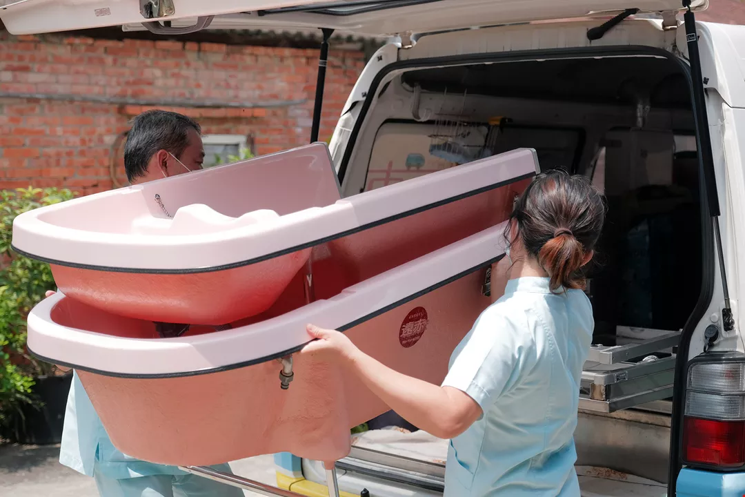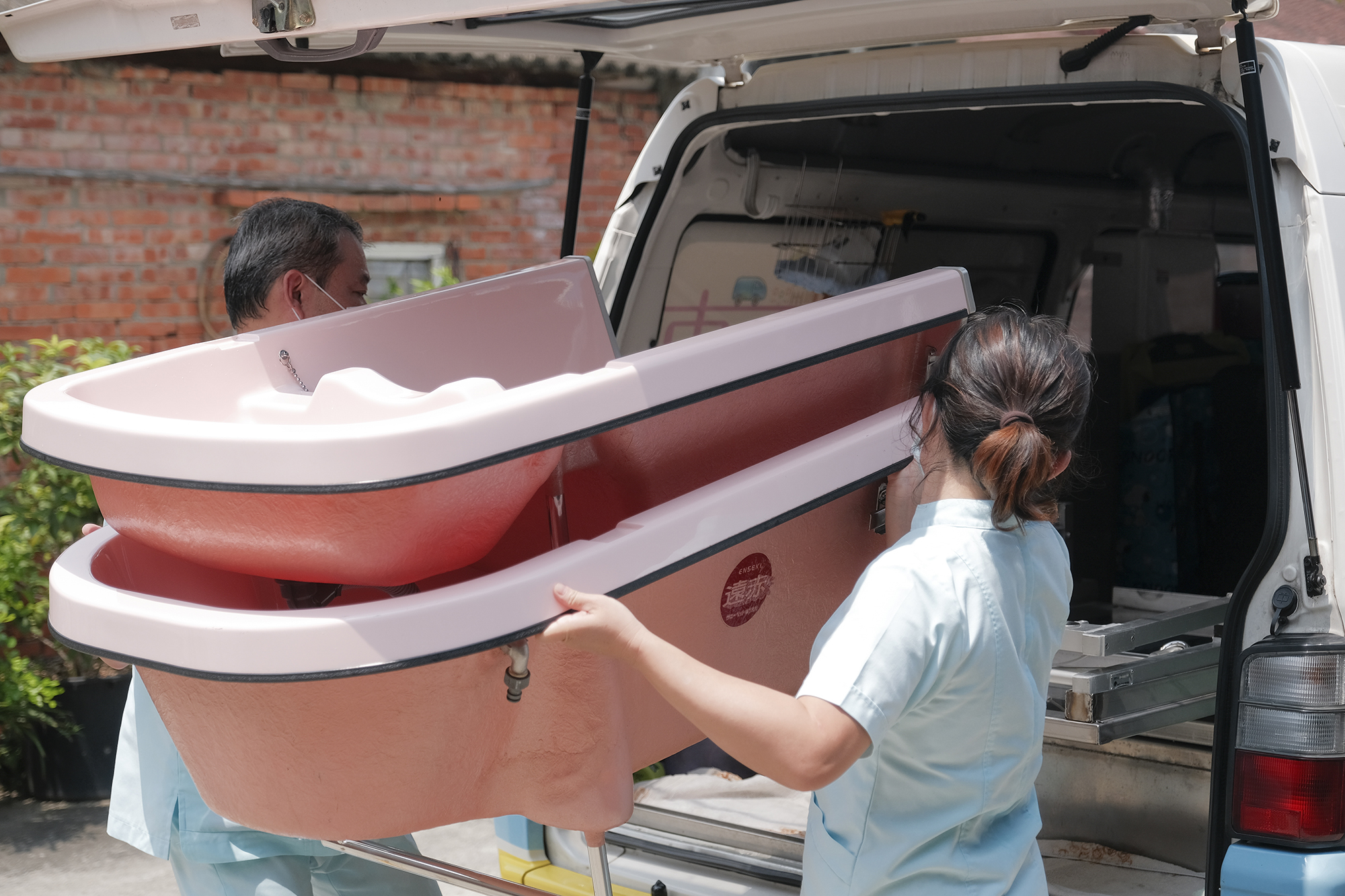 In 2008, Taiwan had its first mobile bathing vehicle. It carried a stretcher specially designed for disabled people and a bathtub that was assembled on site, and was operated by a specialist care team including a nurse.