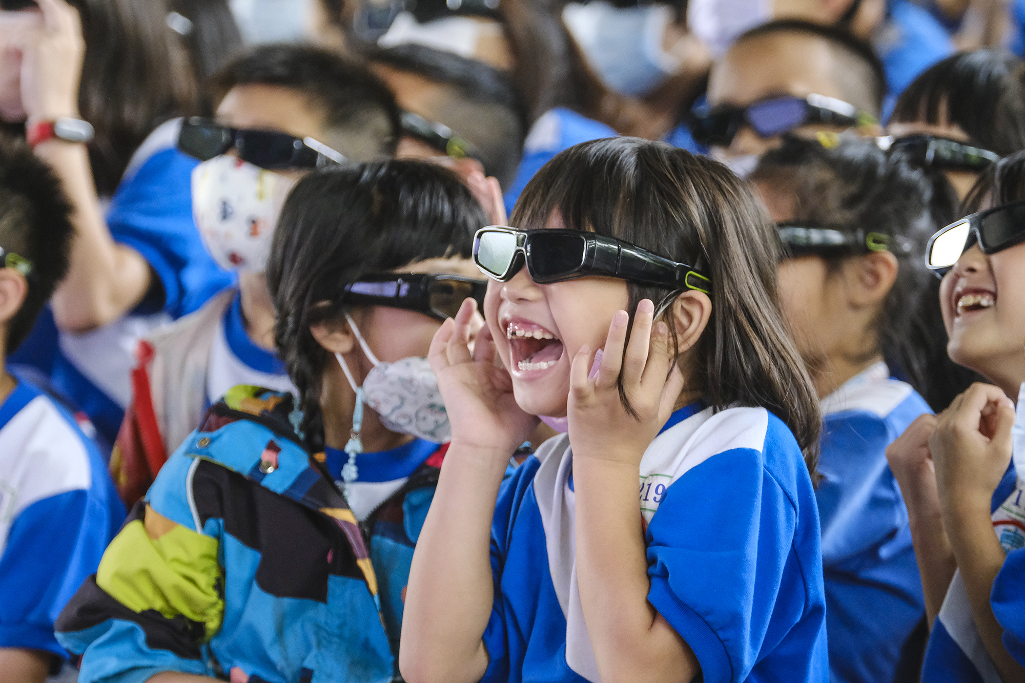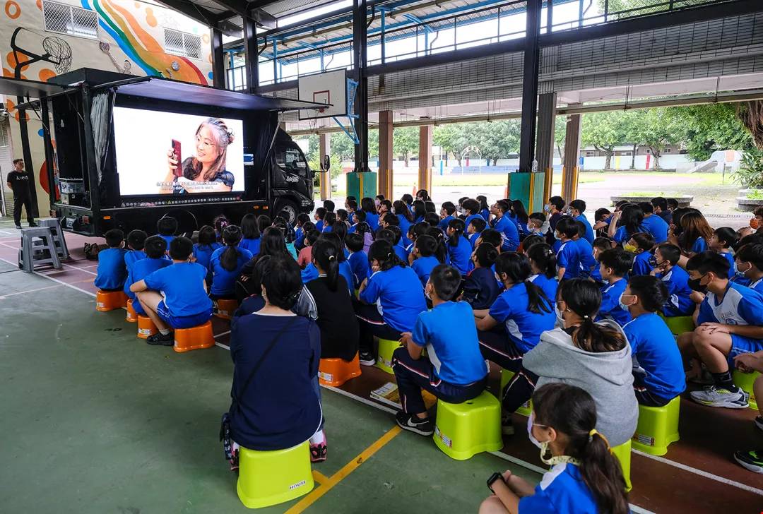 “Wow!” Children wearing 3D glasses watch the images being shown by a movie truck and occasionally let out shrieks of surprise. Schools of fish and flying purple crow butterflies seem to approach their faces, and the kids reach out as if to touch them. At Nan Sing Elementary School in Taoyuan’s Daxi District, the Formosa 3D movie truck is playing 3D video images as part of a project that has been running for more than a decade.
