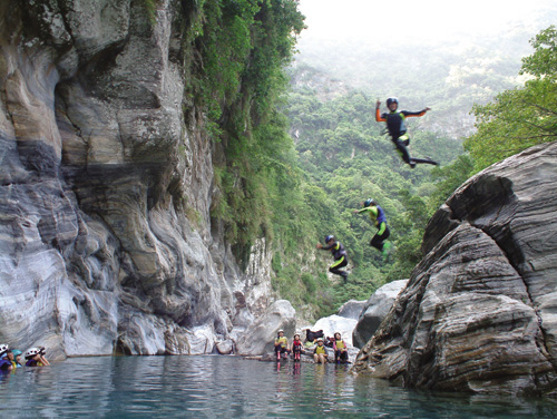 Taiwan lies pinched between the Eurasian and Pacific tectonic plates and as such, offers more varied topography carved by younger streams. Other attractions include abundant natural beauty and no shortage of waterfalls, rapids, gorges, deep ponds, and cascades, as well as twists and turns in the courses of its streams. This is especially true along the eastern seaboard, which boasts majestic mountains pocked with large numbers of marble outcrops that frequently tower above climbers. It's no surprise that the challenge of Taiwan's streams have made them little strips of paradise here on earth for Japanese adherents of the sport.
