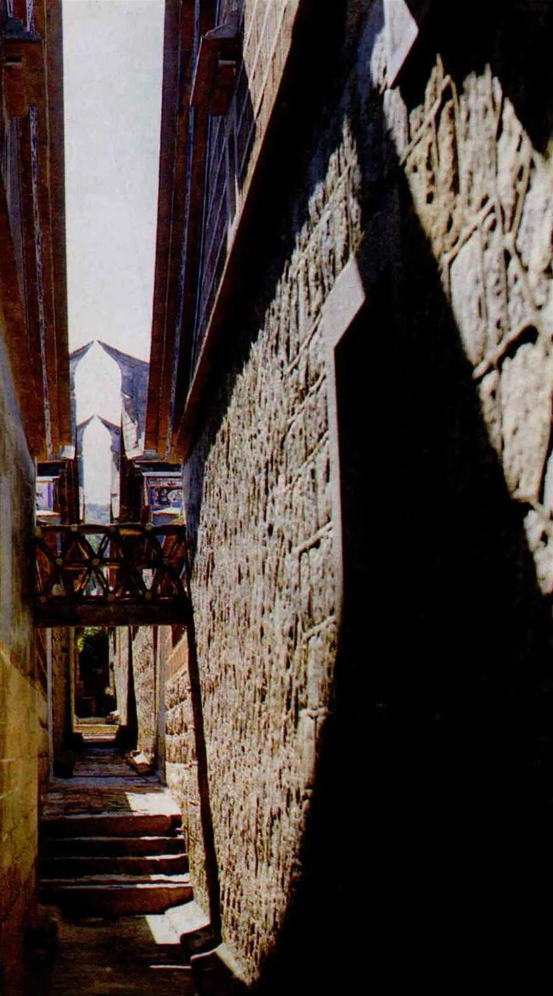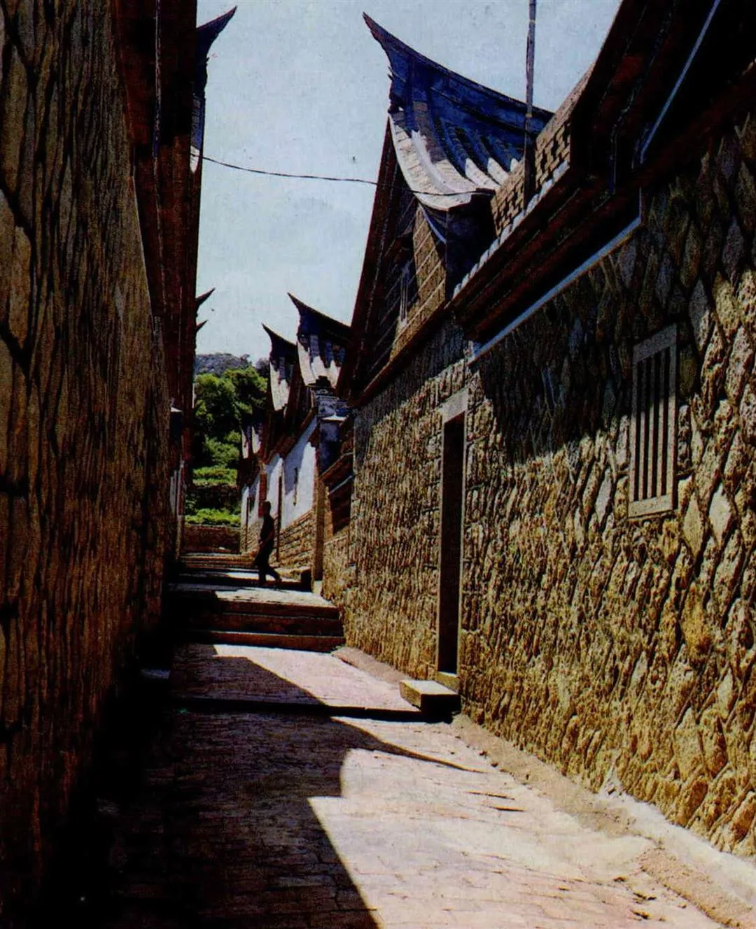 Small alleys in Kinmen are paved with stone slabs. The lintels used to decorate walls are composed of pottery fragments.