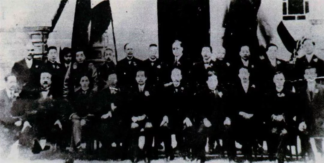 This old picture shows Wang Ching-hsiang (fourth from right in the background), the first of the Wangs to start building the village, posing for a picture with Dr. Sun Yat-sen, the national founding father of the Republic of China (fifth from left in front).