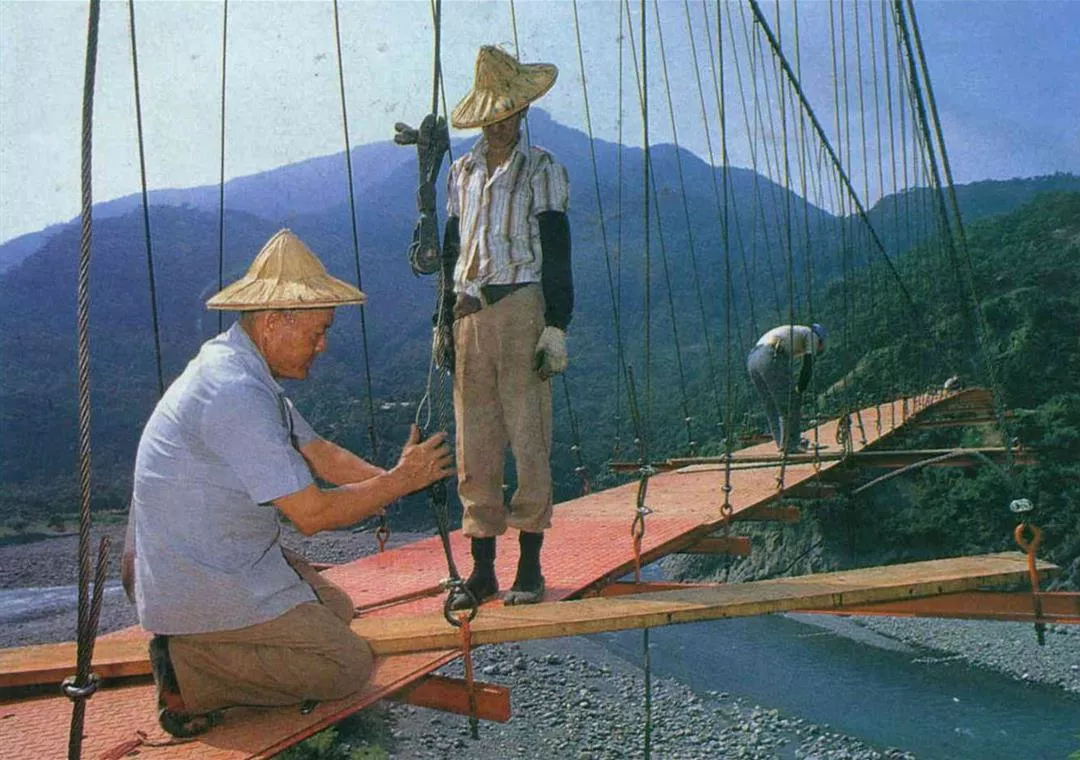 Lin Chih-mu is a rather ordinary-sounding name, yet one that is unfamiliar to most. Few people indeed are aware that he was personally responsible for building such famous local suspension bridges as those at Lushan, Paling, Four Seasons Mountain, Wulai, Wutoushan Reservoir, Taroko Gorge and Chulu, Taitung. For forty years come rain or shine he has diligently forged his way up mountainsides and over rivers, working on the construction of some 600 bridges in all. He also undertakes repair and maintenance work on Taiwan's aging suspension bridges all over the island, although he very rarely leaves his name recorded on the plaque set for the purpose at the head of each bridge. In the truest sense, he is an anonymous hero.