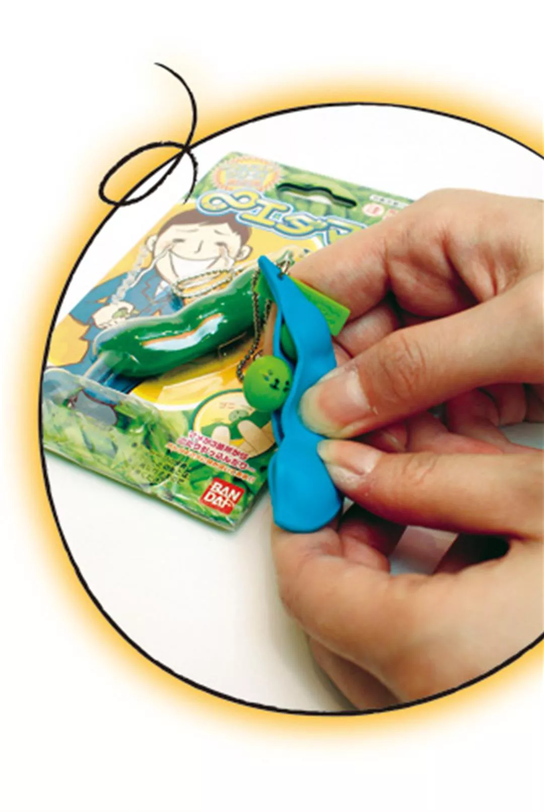 After the infinite bubble machine sold over 2 million units, Bandai followed it up with the "infinite edamame popper." Modeled after edamame, the pods contain beans with 12 different facial expressions, including depressed, crying, and sleepless, with the beans popping out when the pod is squeezed. Not only is this fun, it also provides a way to keep idle hands busy, and has sold strongly like its predecessor. Stockists, including stores known for selling "grown-up toys" like Hands Tailung and online store Zakka, have even sold out of them.