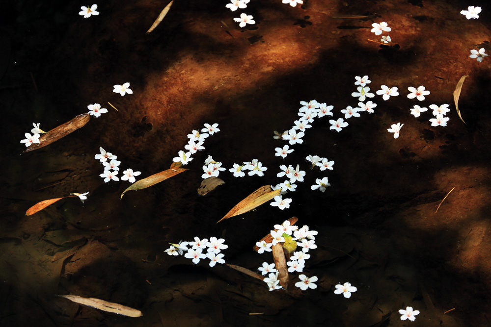 Fallen tung blossoms afloat on the rivers signal the end of spring and the beginning of summer.