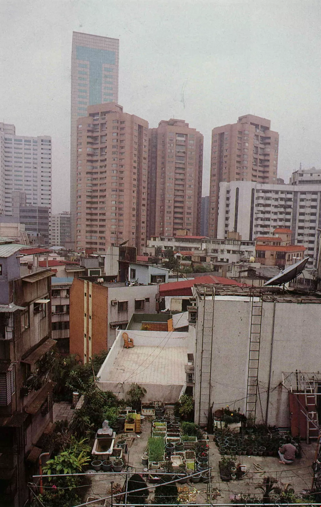 (left, right) Whether it be by making a trip to a suburban "tourist" farm to dig sweet potatoes or by gardening on the roof of their own apartment building, city-dwellers "steal a half-day of leisurely drifting on life's waters," getting a rare taste of country life.