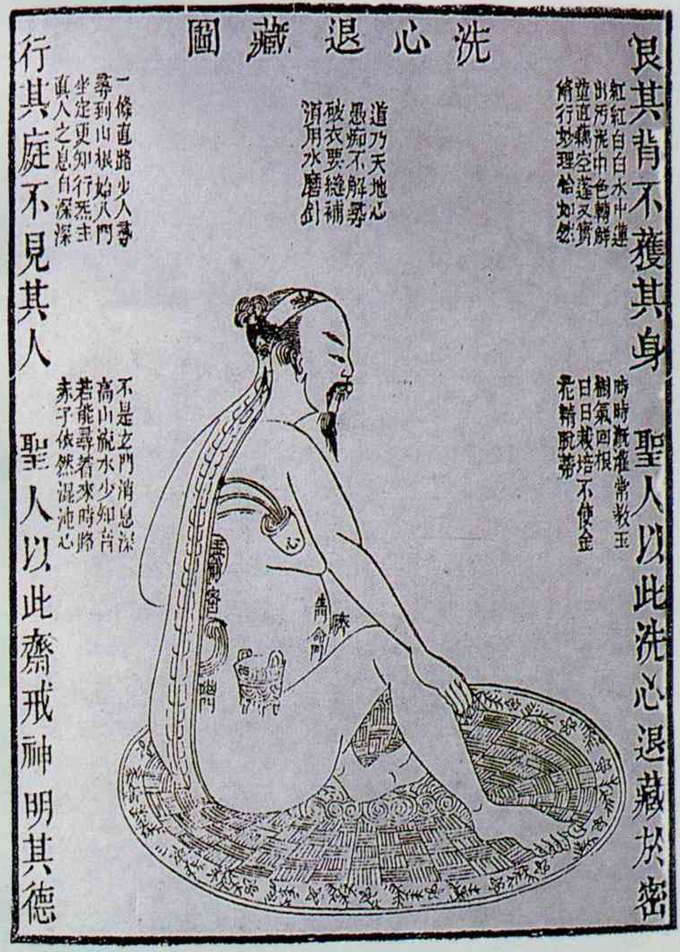 Taoist fangzhongshu calls on men to refrain from ejaculation and guide their masculine qi upwards along their spinal column during coition, in order to improve their health and strengthen their bodies. (courtesy of Golden Maple Publishing co.)