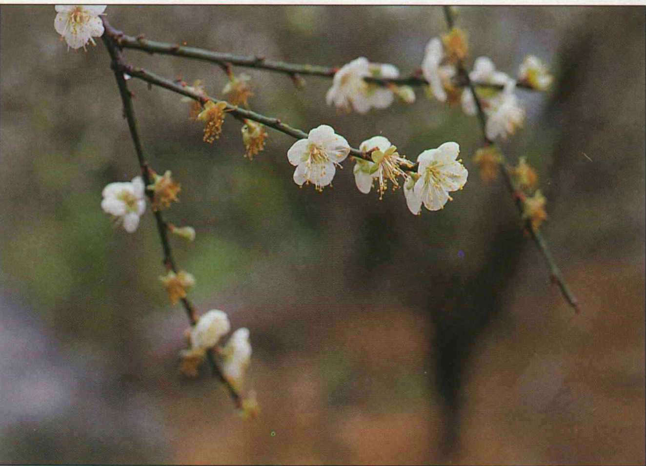 But the cold which induces the plum to flower is the cold of southern China. Across the Qinling Mountains in the real north country, where the winter's chill freezes the ground a yard deep, the cold is too severe even for the cold-loving plum.