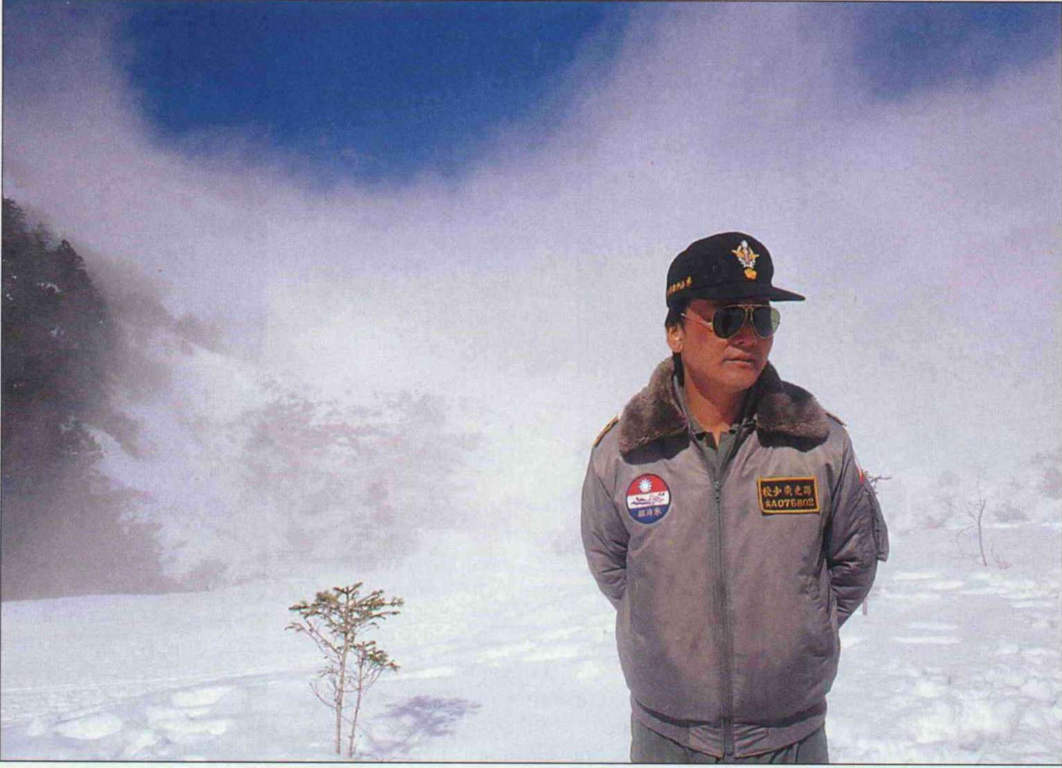 In subtropical Taiwan, the plums bloom without snow for company. If you want to see them together, the plum flower on the cap of this winter combat training officer is about the closest you'll get. (photo by Diago Chiu)