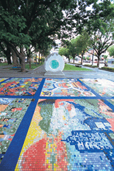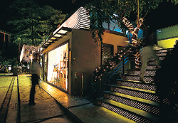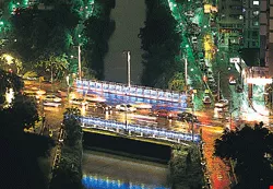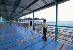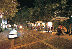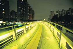 In 2001, the Public Works Bureau tore down the wall. Modern Art Association of Kaohsiung director Lin Hsi-chun came up with the concept of inviting nine artists to use light as a theme and illuminate the area from the terrace below and the trees above, bathing the area in reflections and shadows of blue, green, and yellow. With the addition of a sophisticated coffeeshop and live music on the weekends, this "sidewalk" became Kaohsiung's most exciting spot for the younger generation.