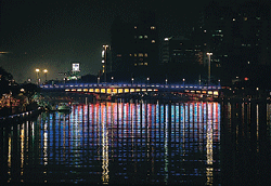 At night, the river gets a new look: To go along with the launching of a new tour boat service in July, the red Chungtu Bridge has been fitted with yellow lights like crescent moons, and the Chungcheng Bridge is lit with purple and yellow lights which shine like pearls. The most special feature, the Light-Carved Bridge, shimmers over the river. The Public Works Bureau went about the beautification process of the area with great care, designing unique lighting for each of seven bridges. The lights are reflected in elegant curves on the waters, brightening up the whole river.