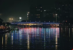 The Light-Carved Bridge, with its unique curve, adds a romantic note to the newly-clean Love River.