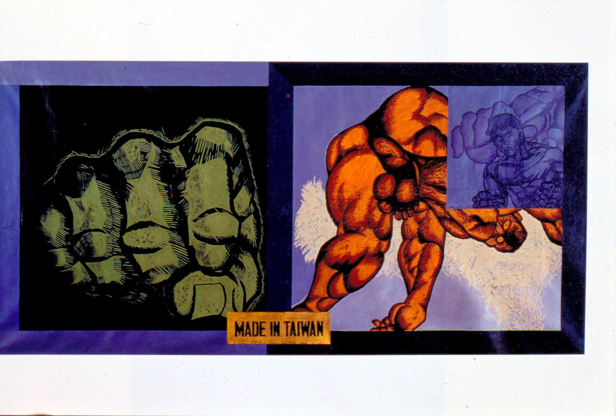 Yang Mao-lin's "Made inTaiwan: Limbs, Trunk, Sign Section I." Composite materials, 1990; 175x350 cm.