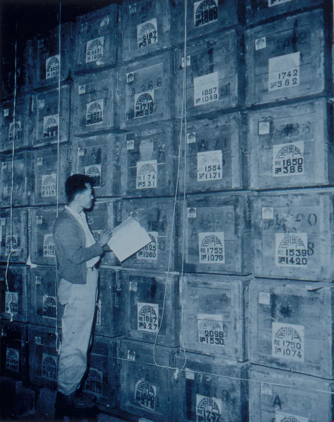 In this way some 13,484 cases of articles survived the war. In March 6, 1947, the collection was gathered together at Chungking and shipped back to Nanking. Na recalls waiting in Nanking for three months down on his hands and knees with flashlights and poison fighting termites. "It was more of a headache than escaping the war," he says.