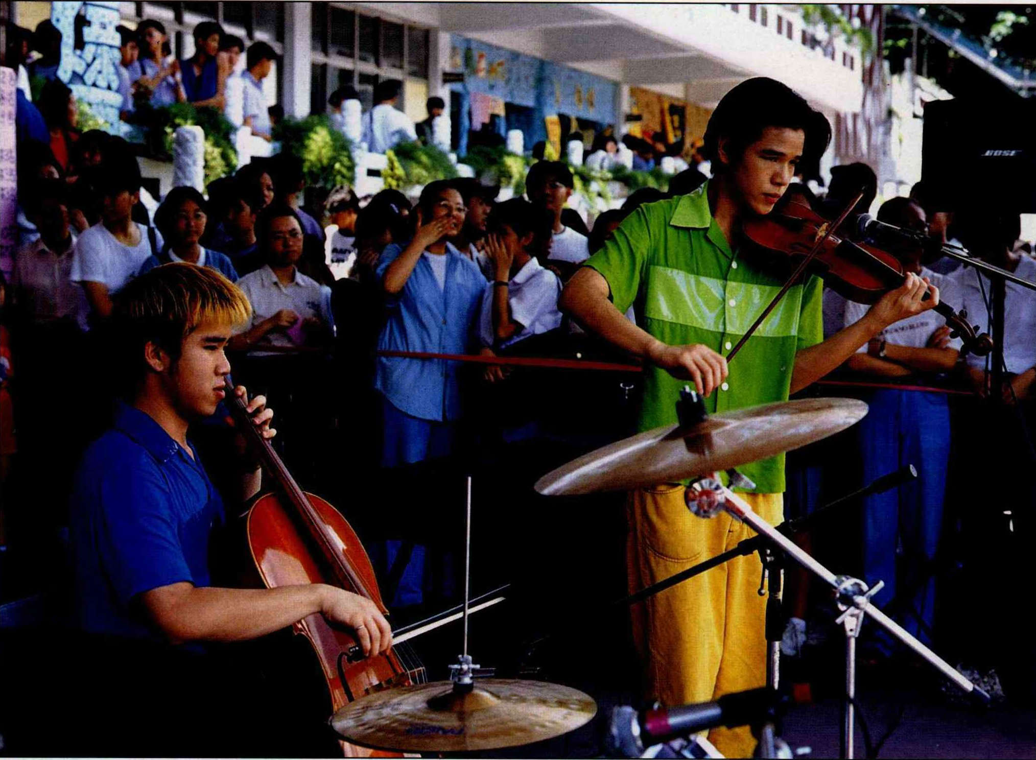 A&C, who have just now started their singing careers, seem to have taken hold of some of Virginia Liu's sincere advice. In the promotional photos for their first album, these two brothers, who stumbled into the pop music business, appeared with a "new new youth" image full of "contradiction." They took on roles both ancient and modern, Chinese and Western. At one moment they played the roles of shepherd boys, wearing traditional Chinese clothing and Buddhist rosaries. At the next moment they wore the trendiest of plastic apparel. Then they posed holding the classical instruments that are their specialties-the violin and the cello. Although they have made their appearance in the visage of pin-up singing stars, the two brothers realize they cannot sing top-40 songs for their entire lives, and that the most important element for success is true ability. They have therefore already begun planning how to make a transition in the future.