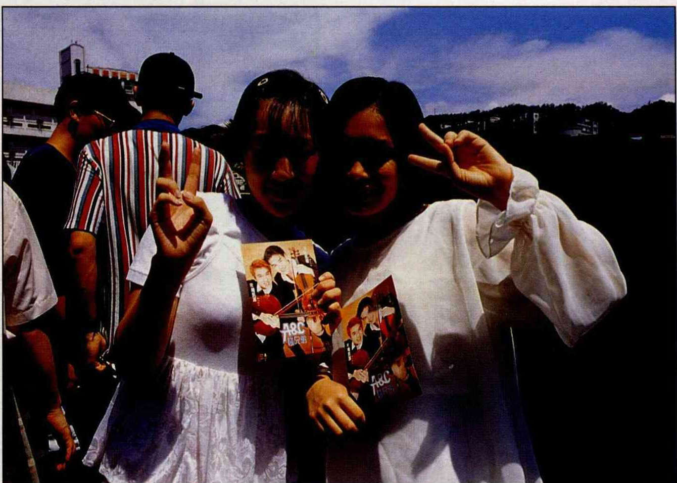 At 5:55 am, five minutes before the race begins, a white Honda Civic pulls up in front of the front gate. A group of people swiftly get out and rush toward the starting line. Right then, from either side, the pack of teenage girls that have already been waiting for a long time impulsively rushes forward, but half way there, workers shout at them, "Back up, back up! They're about to start running, you'll be knocked over." As the girls reluctantly break up and return to either side, two big boys wearing white T-shirts and long blue jeans, come up to the starting line ready to run. "It's them." "Right, but don't you think Stan and Jeff have gotten thinner?" The conversation behind their backs reveals a feeling of tender fondness. It turns out the purpose of this unending weekend daybreak vigil has been to greet the special guests of the Swatch Olympic Road Run-the LA Boyz, members of the "older" generation who initiated the recent trend of ethnic-Chinese Americans coming to Taiwan to start up singing careers.