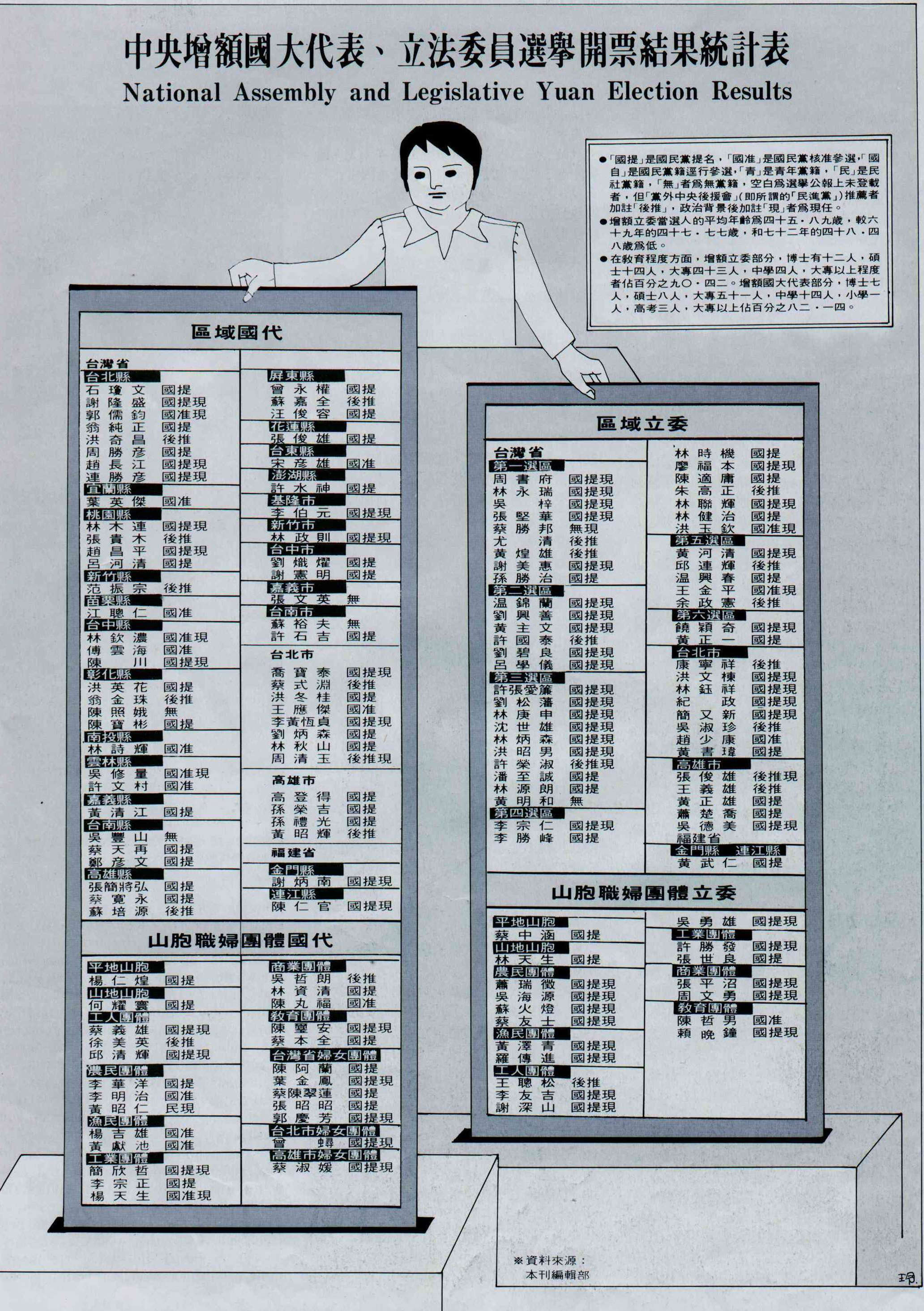 On December 7th last year, the prestigious New York Times carried a long front-page story on the ROC's national elections held the day before, complete with pictures of President and Mrs. Chiang casting their ballots and voters lined up at the polls. Election results were reported on the front page of the Washington Post as well, and were broadcast round-the-clock on 24-hour news stations.