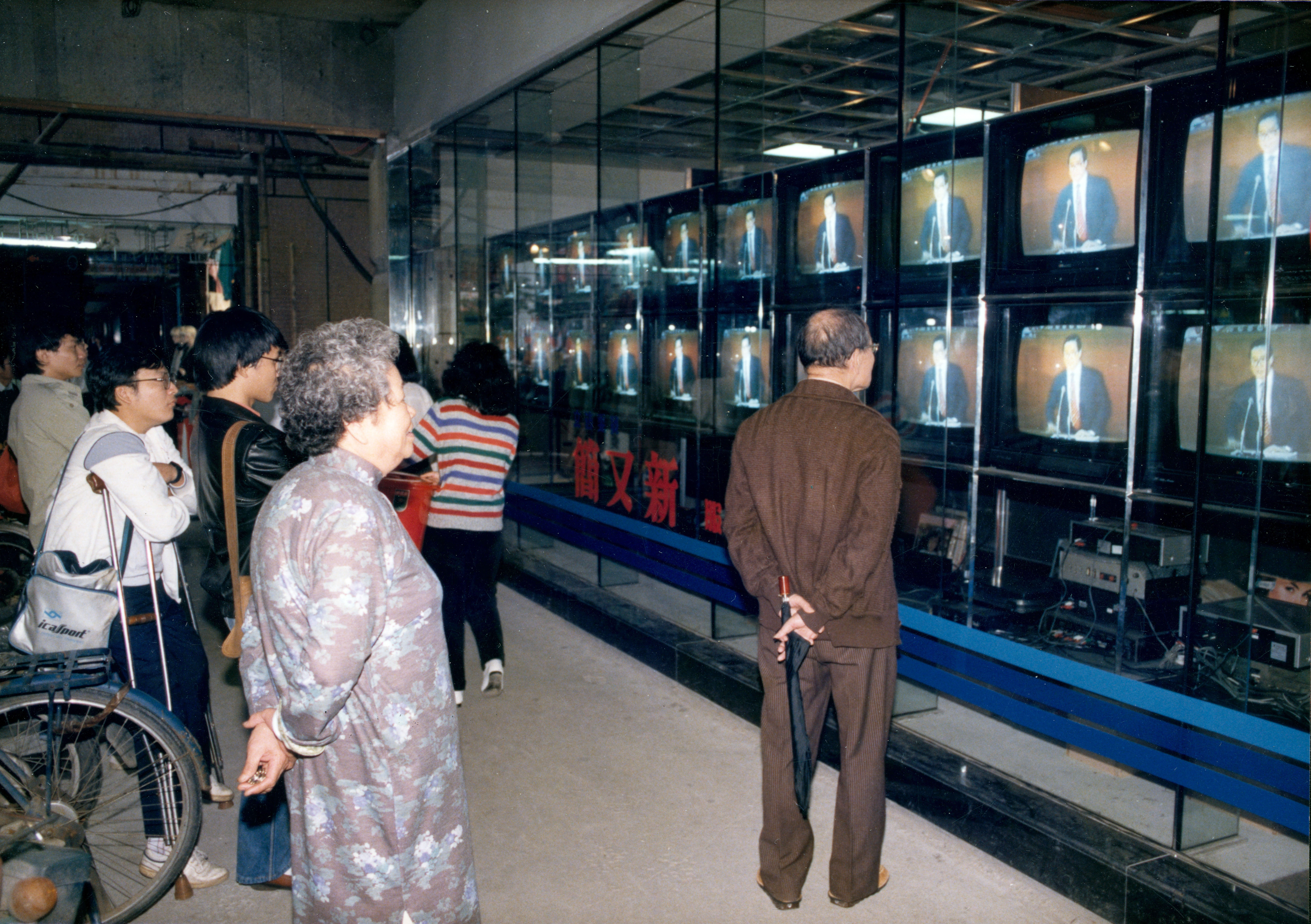 During the hotly contested elections, candidates pulled out all the stops. Shown here is the "TV wall" one candidate used to get his message across. (photo by Hsich Kuo-Cheng)