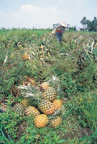 Although best known for its bananas, Chishan's pineapples aren't bad either. The photo shows Chishan farmers harvesting their fruit crops.