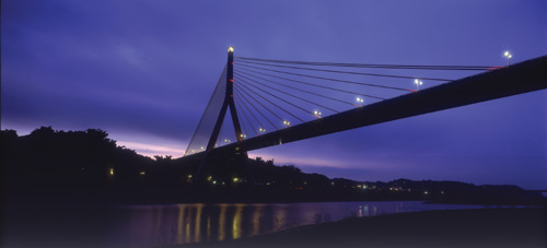 Spanning the Kaoping River, the Kaoping Steel Bridge, a nationally-recognized historic site, is a landmark in the region. Now, a cable-stayed bridge connects the counties of Kaohsiung and Pingtung. The two bridges are popular sites. After Typhoon Haitang washed out three of its piers, however, the old bridge remains in disrepair today.