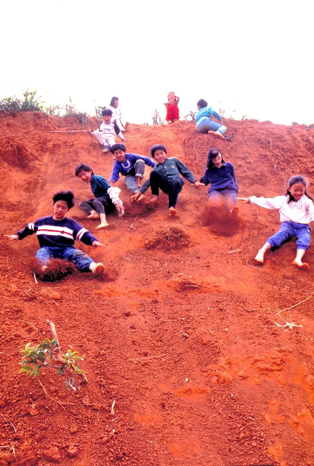 (Left) Sliding on the slope and letting it all hang out; this is one of the games Forest children like most.